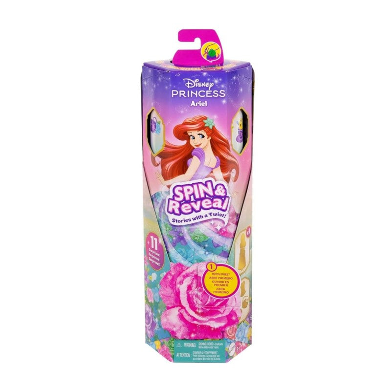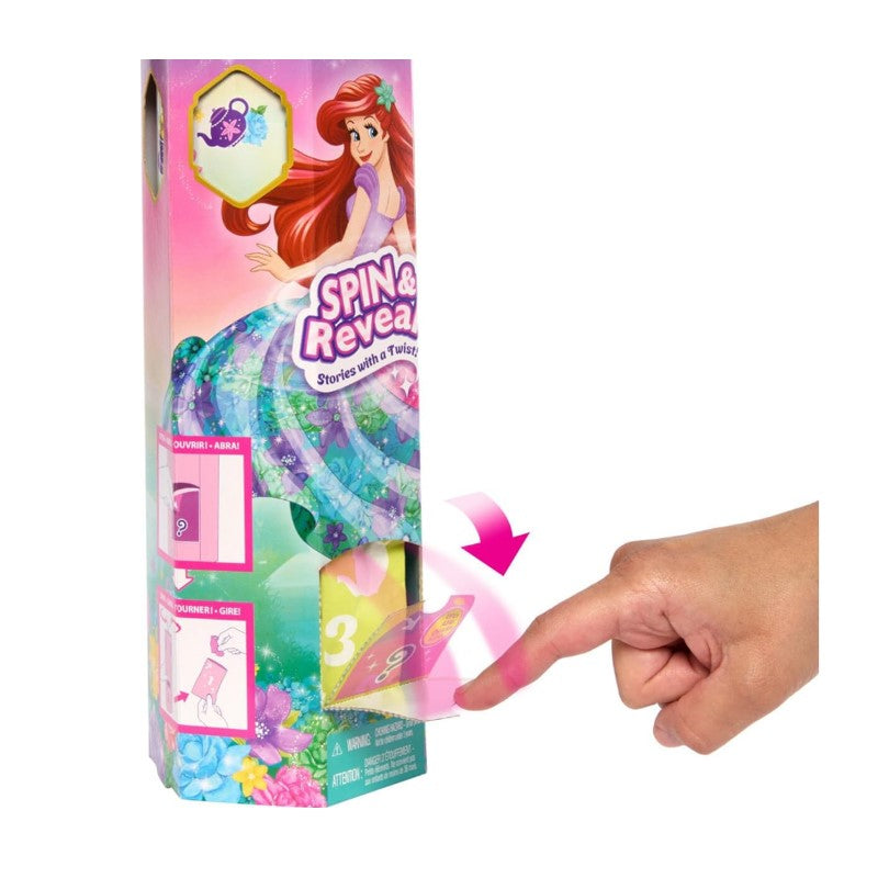 A Ariel da Disney ganha um toque mágico nesta experiência de unboxing da Disney Princesa Spin and Reveal! Primeiro, abrir a flor revela uma cena de brincadeira com silhuetas misteriosas. Em seguida, você pode girar a embalagem para encontrar 5 bolsas misteriosas com 5 acessórios e 5 adesivos.